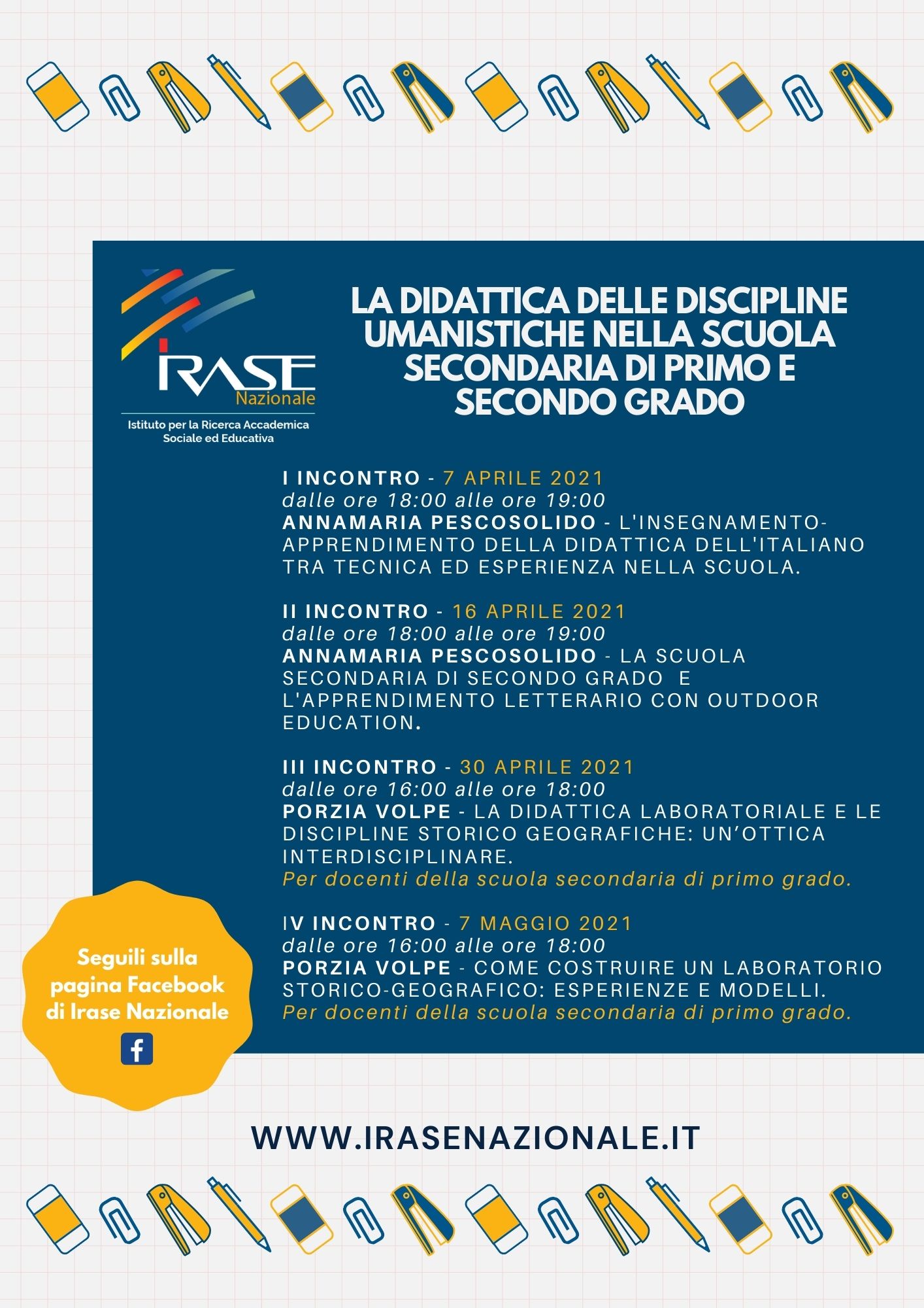 IRASE: Locandine Cicli Webinar Gratuiti sulle discipline umanistiche e scientifiche per le scuole di ogni ordine e grado.