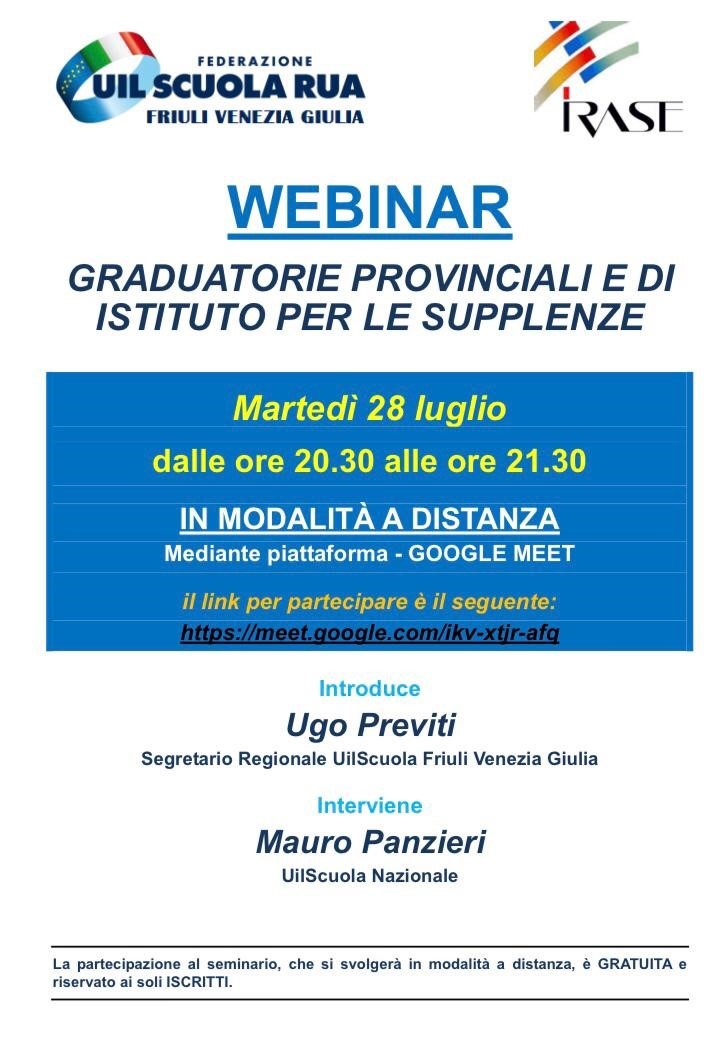 Webinar UIL SCUOLA Graduatorie provinciali e istituto per supplenze_ 28 luglio 2020
