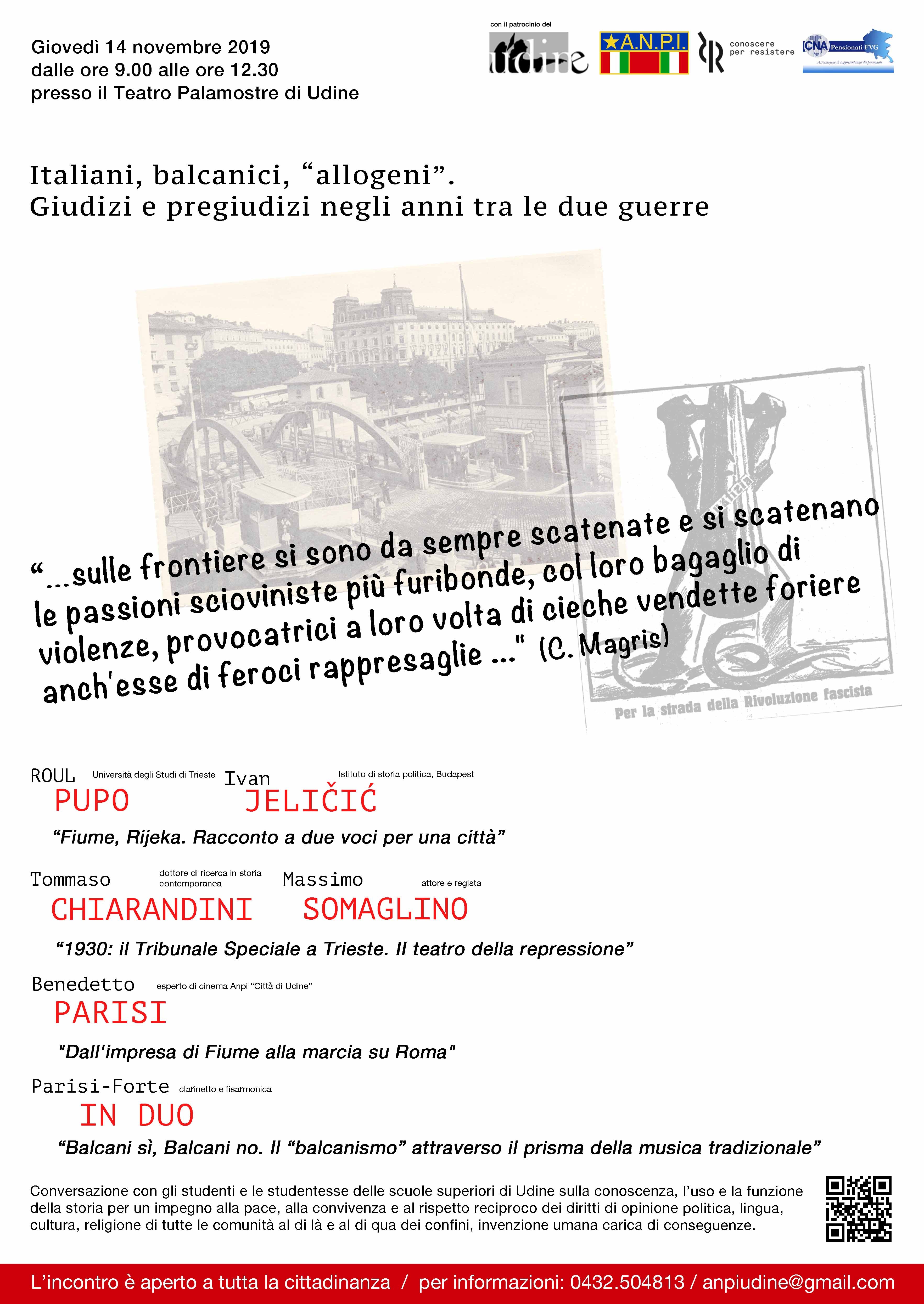 ciclo di conferenze Anpi Conoscere per resistere 2019-2020_giovedì 14 novembre_Italiani, balcanici, “allogeni”. Giudizi e pregiudizi negli anni tra le due guerre