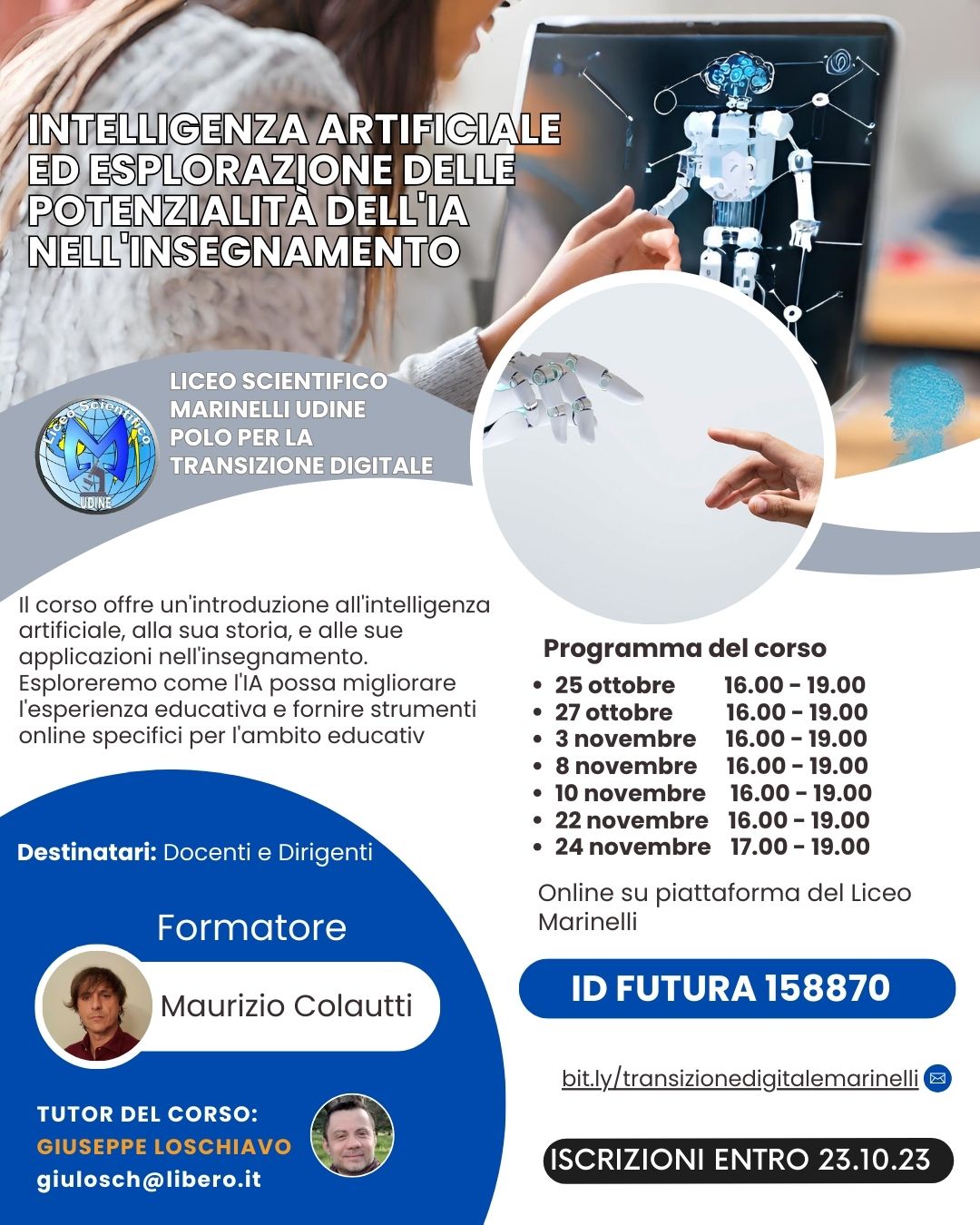 Corso "Intelligenza Artificiale ed esplorazione delle potenzialità dell'IA nell'insegnamento"_codice ID nr. 158870