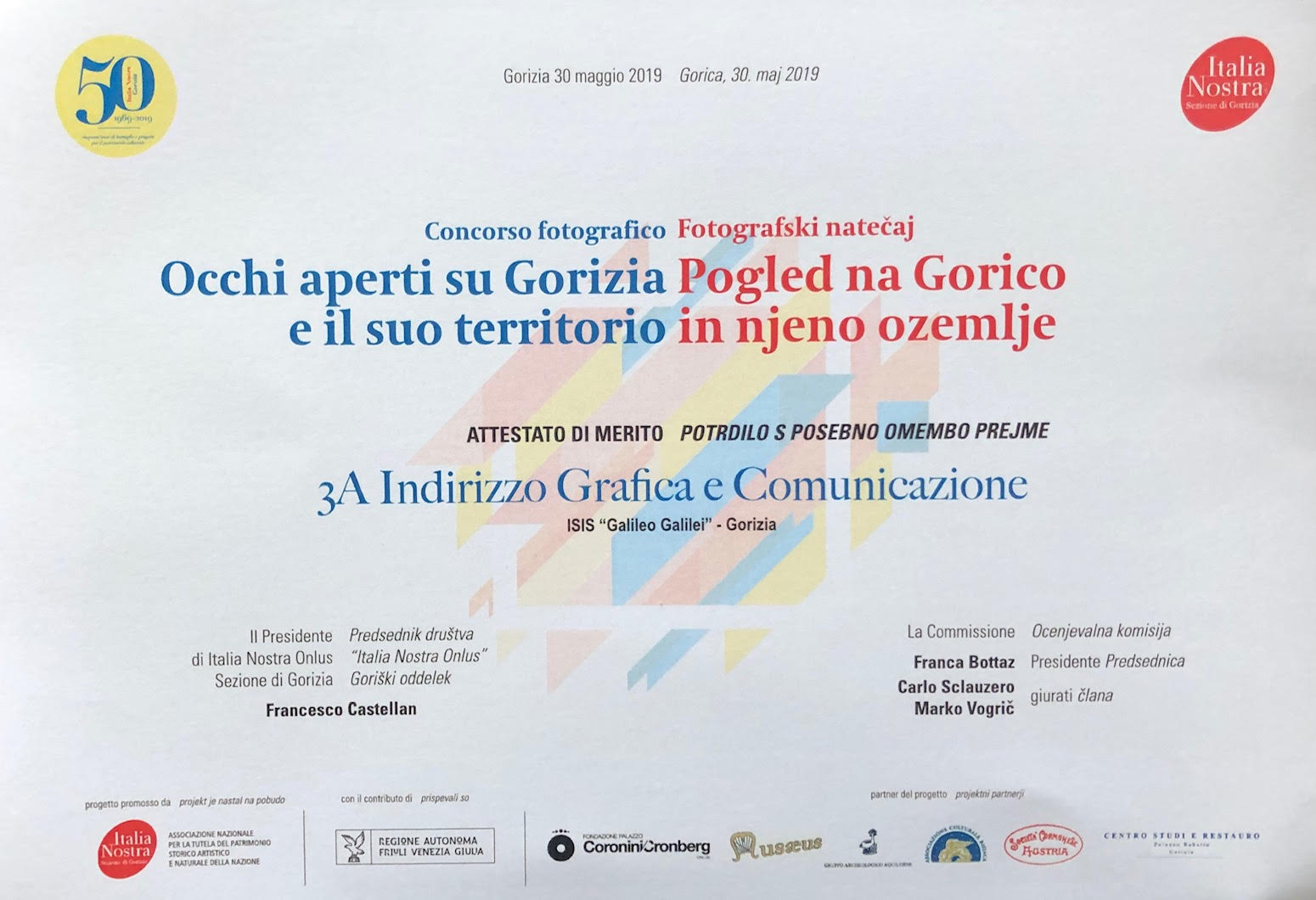 Una fotografia della classe 3AGEC è stata premiata con una menzione speciale nel concorso "Occhi aperti su Gorizia e il suo territorio" organizzato da Italia Nostra.