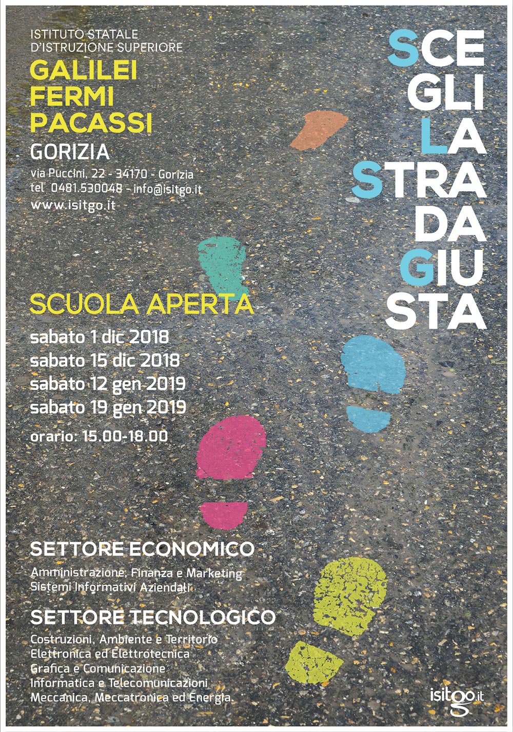 Scarica il materiale informativo dell'Istituto Statale d'Istruzione Superiore "Galilei" "Fermi" "Pacassi". Troverai tutte le informazioni sui corsi di studio, sulle iniziative e sulle modalità di iscrizione agli stage che l'istituto organizza per gli studenti delle classi terze delle suole medie.